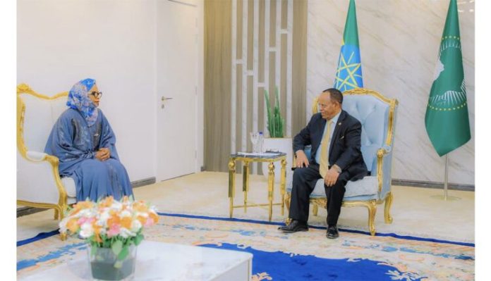Ce lundi au palais présidentiel, s’est tenue un entretien par le président éthiopien Taye Atske Sélassié avec l’ambassadrice de la Mauritanie à Addis-Abeba et représentante permanente auprès de l’Union africaine, Mme Khadijetou Mbareck Fall. L’objectif est de faire ses adieux après la fin de sa mission en tant qu’ambassadrice extraordinaire et plénipotentiaire de la Mauritanie en Éthiopie.