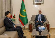 Le ministre de la pêche et des infrastructures maritimes et portuaires, Mokhtar Ahmed Bousseiif, a eu aujourd’hui, lundi, des discussions avec l’ambassadeur de Chine accrédité en Mauritanie, Tang Zhongdong, portant sur les relations de coopération existantes entre les deux pays et les moyens de les renforcer et de les développer.