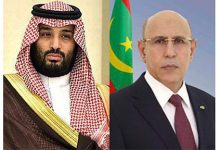 Le président Mohamed Ould Cheikh El Ghazouani a félicité aujourd’hui, dimanche, le prince héritier et Premier ministre saoudien, Mohammed ben Salmane ben Abdulaziz Al Saoud, à l’occasion de la célébration de la Journée de la Fondation du Royaume d’Arabie Saoudite.