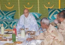 Le président Mohamed Ould Ghazouani a pris l’habitude, au cours des dernières années, de partager les repas de rupture du jeûne du Ramadan avec les soldats mauritaniens dans différentes bases militaires. Il a notamment partagé le repas de rupture du jeûne avec les soldats stationnés à la base militaire dans la région de l’Adrar, au nord du pays, et auparavant, il avait partagé le repas de rupture du jeûne avec les soldats stationnés à la frontière orientale.