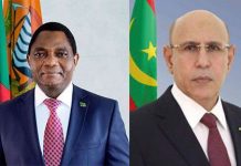 Le président Mohamed Ould Cheikh El Ghazwani a envoyé jeudi un câble de félicitations à son homologue zambien, Hakainde Hichilema, à l’occasion de la célébration de la fête nationale de son pays.