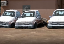 L’armée malienne a diffusé des images montrant des véhicules gonflables factices ressemblant à des Toyota Landcruiser couramment utilisés en Afrique par les groupes armés dans la région sahélo-saharienne de l’Afrique de l’Ouest.