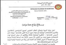 Le ministère a précisé que les inscriptions seront ouvertes du lundi 22 décembre 2025 à 8 h au vendredi 13 février 2026 à 12 h, via la plateforme numérique du ministère : dec.education.gov.mr.